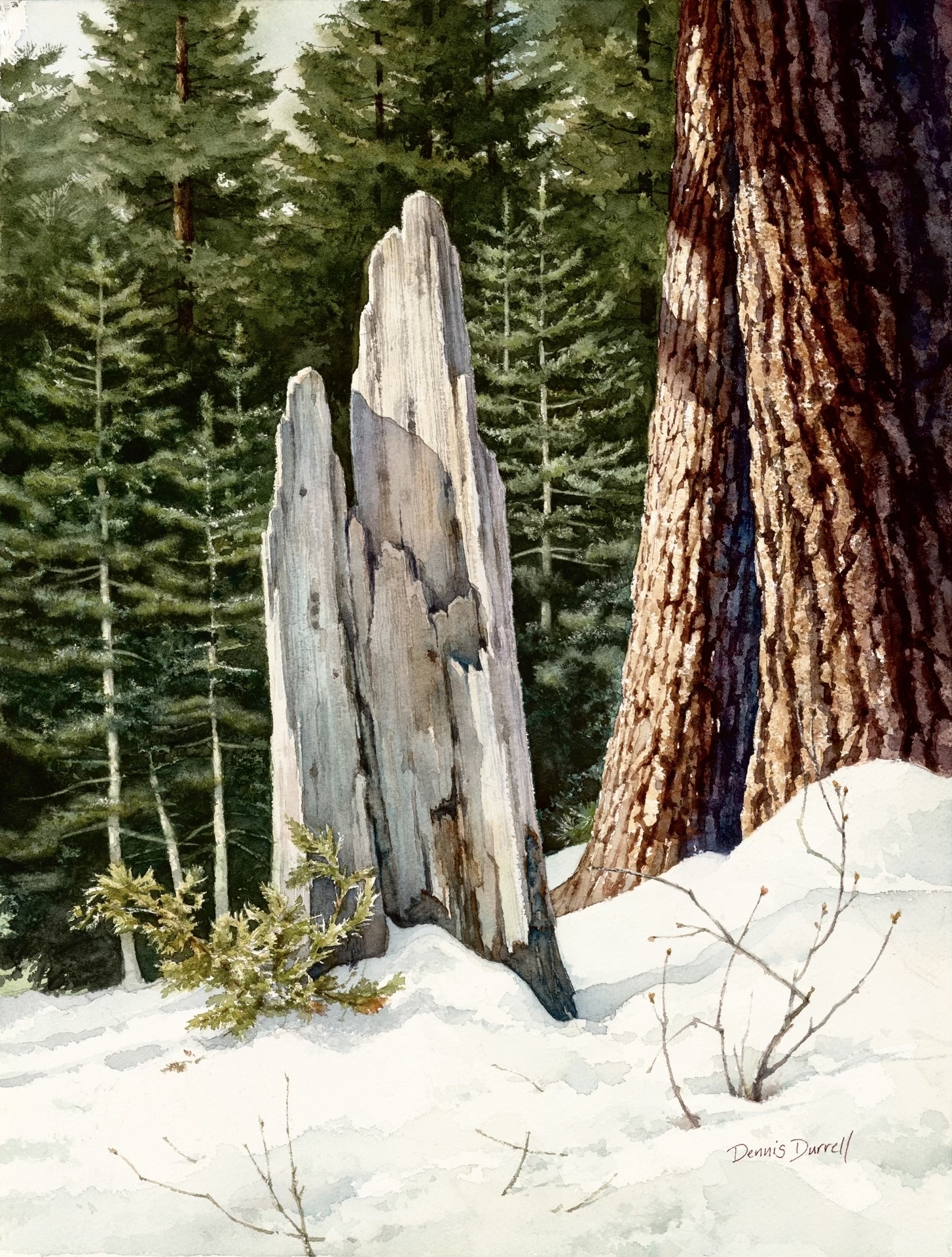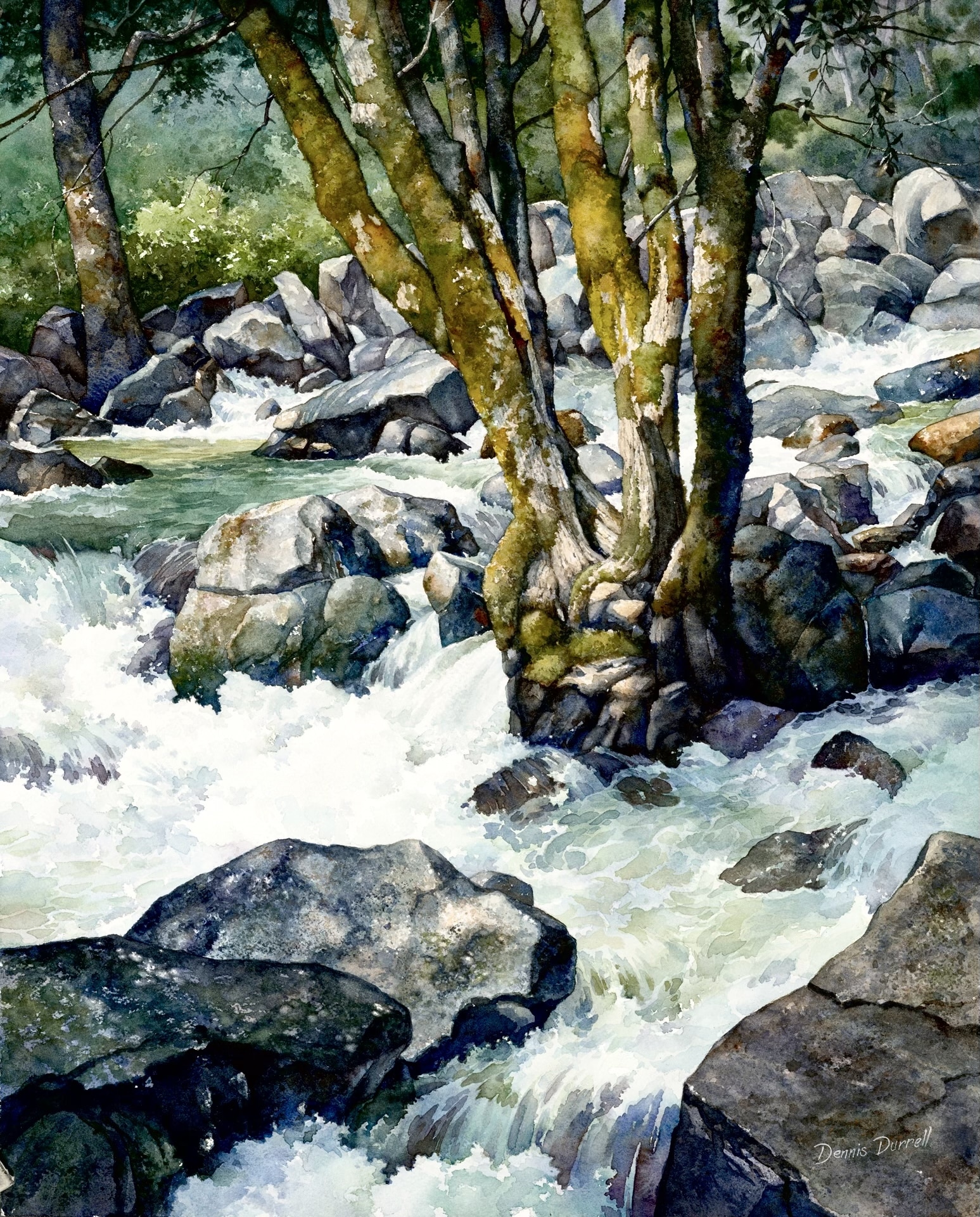 Dennis Durrell has been an “observer” from a very young age growing up in rural Southern California. With a keen awareness of his surroundings, he was always awestruck by all of God’s creations. Hundreds of acres of citrus orchards were half a block up the street in one direction and the Santa Fe Railway main line to L.A. was two blocks down the street in the opposite direction. In fact, the trains inspired his very first painting at the young age of three and a half. His playgrounds included the San Gabriel Mountain Foothills, the San Gabriel Canyon and River, and the desert like Spreading Grounds located to the west. As a young child he was free to explore all of these places with his older brother, friends, and on his own. In this world, he learned to see what most people seemed to miss.