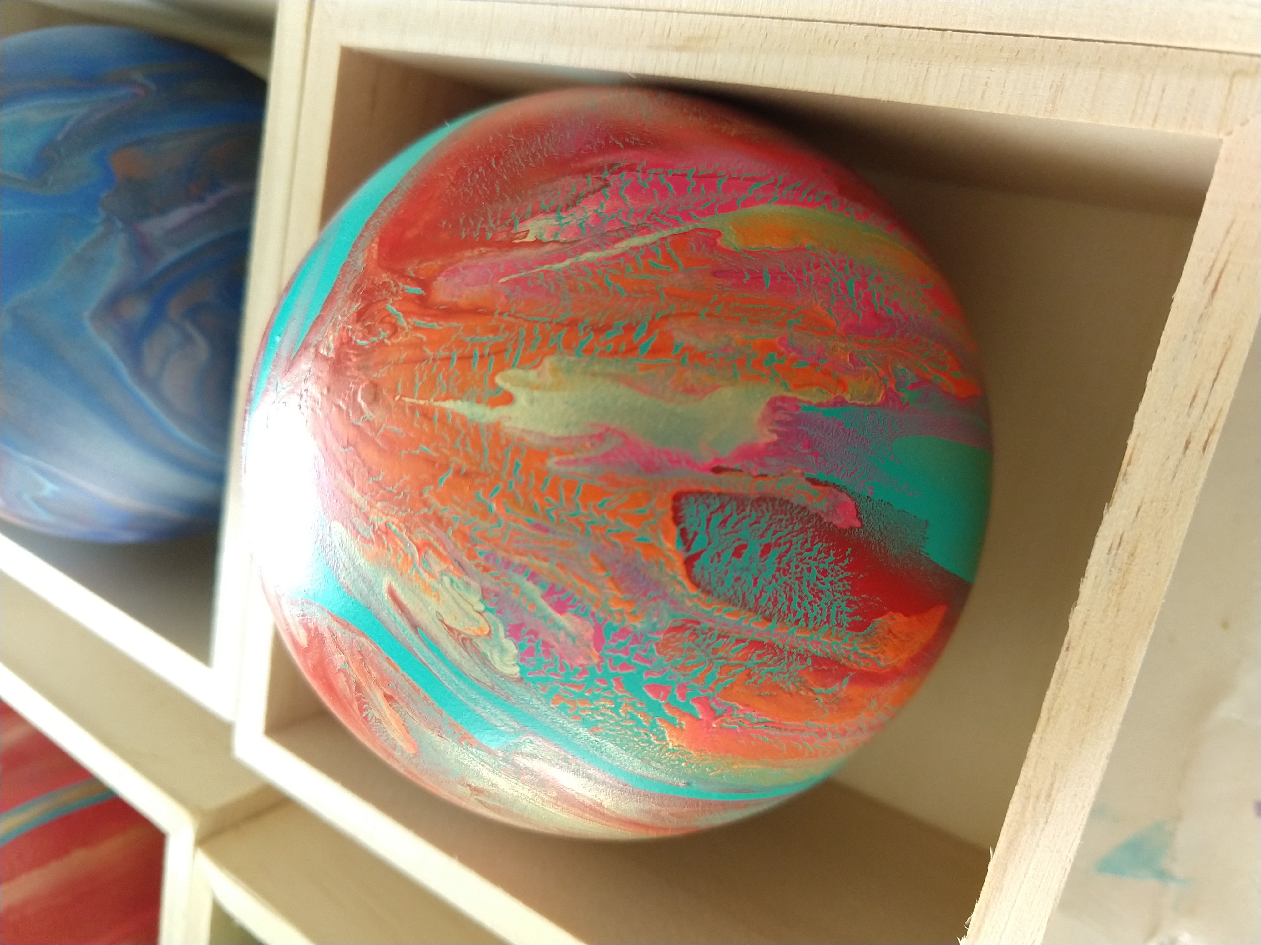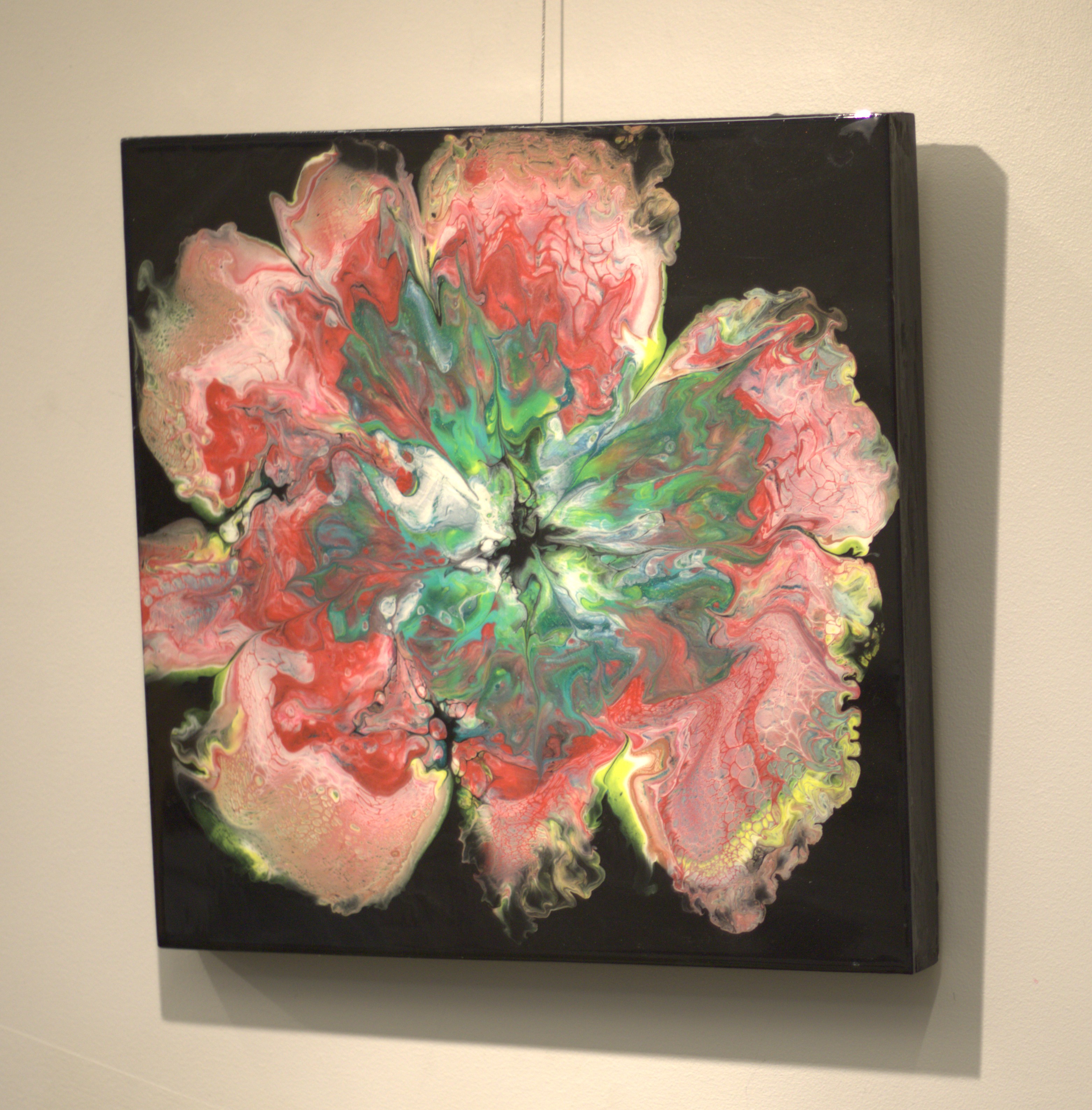 Artist Bio Erin Alstrom Cook is a fluid artist in Fresno, California. Each abstract piece is singularly unique and expressive. They "speak" to the viewer and create a connection in both the smaller details and the larger scope of the piece. Each painting is "thrown" or "poured," using acrylic paint, mixed by the artist to the desired viscosity. The artist’s surface for the paintings are gallery depth Birch wooden panels, which are both durable and light weight for easy display. Though created with intent and purpose, the pieces take on a more organic quality dictated by the fluidity of the paint. Once thoroughly dried, the paintings receive a lustrous finish of gloss varnish, or resin, for a professional and lasting piece of art. Erin is also a published fiction writer and a singer in a band. Because of these creative interests, her art pieces are both inspired by, and dedicated to, musicians and writers that she admires. She is also greatly inspired by, and drawn to, natural environments she has visited or photographed.
