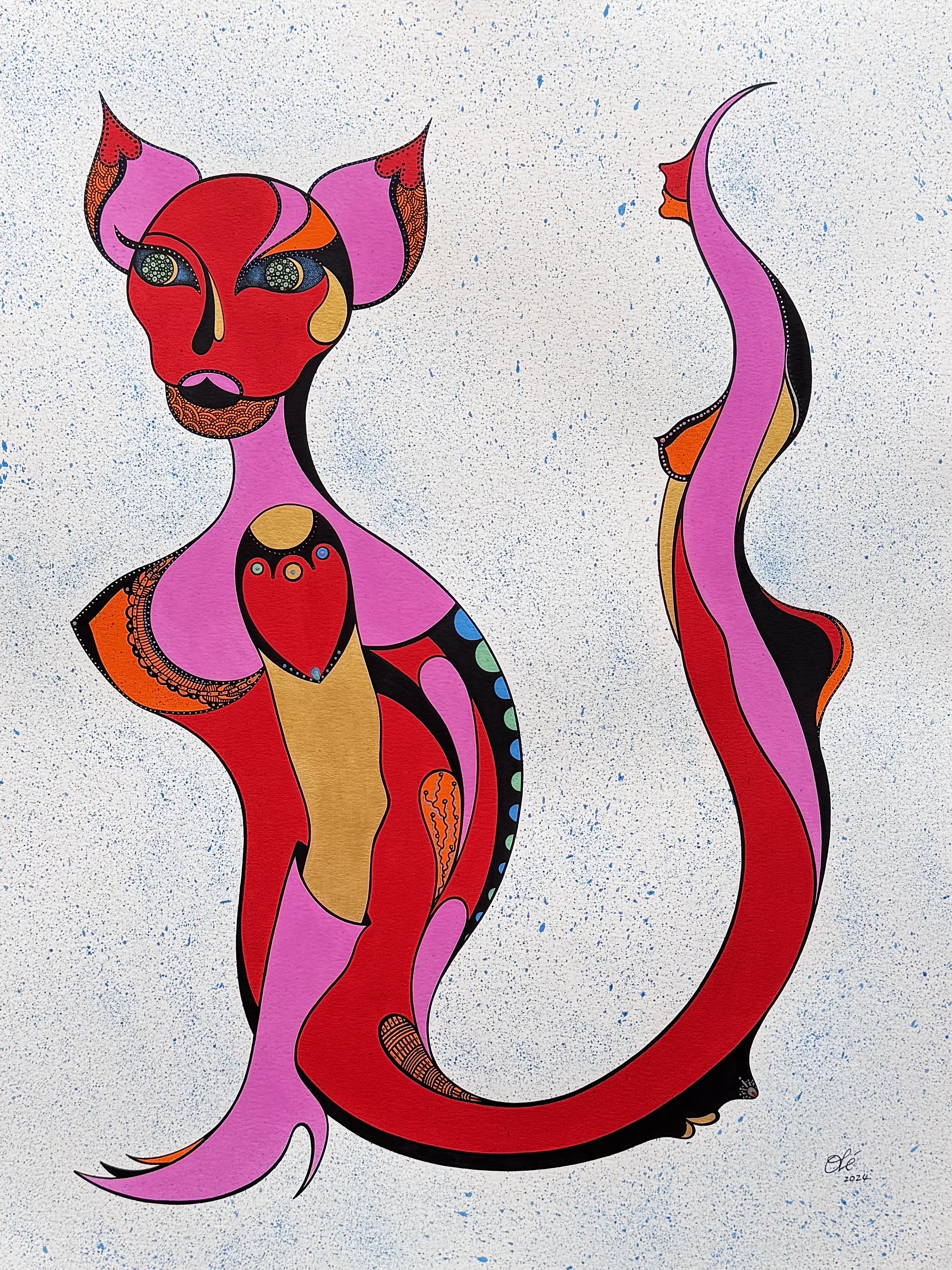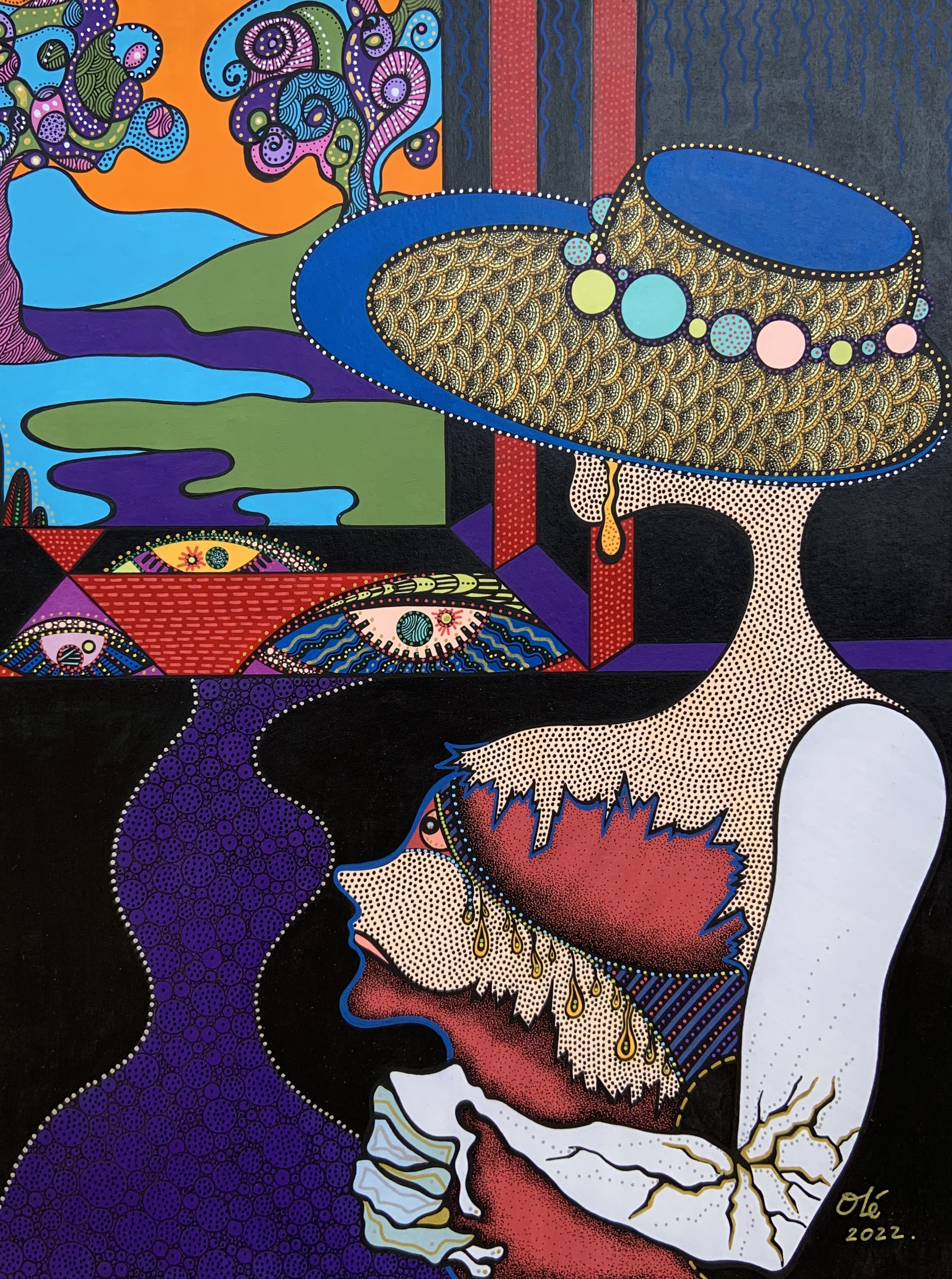 Olé’s works are mostly acrylic painting on canvas, ink on paper, photography, installations, and performance art. Her themes usually involve dark and colorful depictions of disfigured female forms and explore the broad spectrum of the female experience. Olé hopes that her art inspires women to break through the limitations imposed by the expectations of society and express themselves in their own way.
