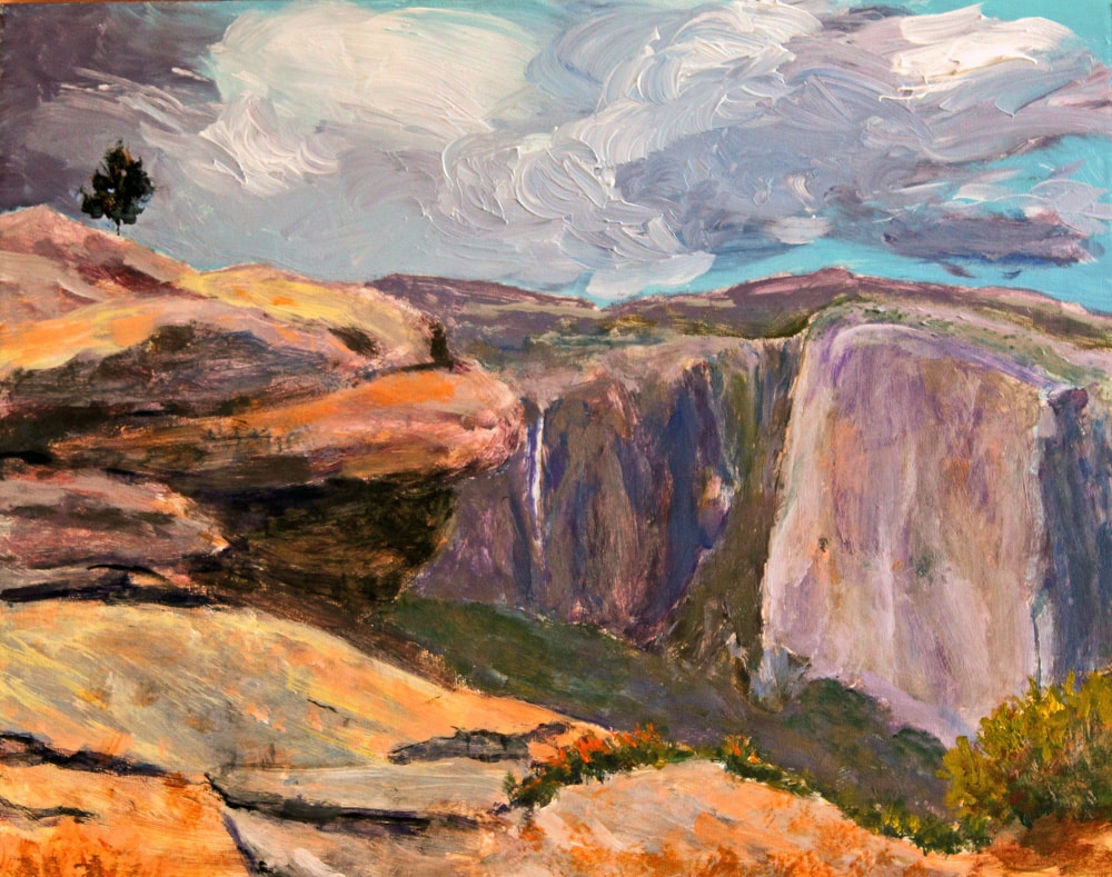 One of the memories I treasure is my sister and I as very young children taking our oil paints out in the meadow where we could see the falls, or down to the river near the footbridge to paint our surroundings. It is and was something we would do almost daily. As we grew we ventured farther afield. The high trails offered new viewpoints to paint and ponder. Childhood haunts did and still do draw us back. They ground us and make us remember who we are. That is why even when I travel far, I will always paint Yosemite.